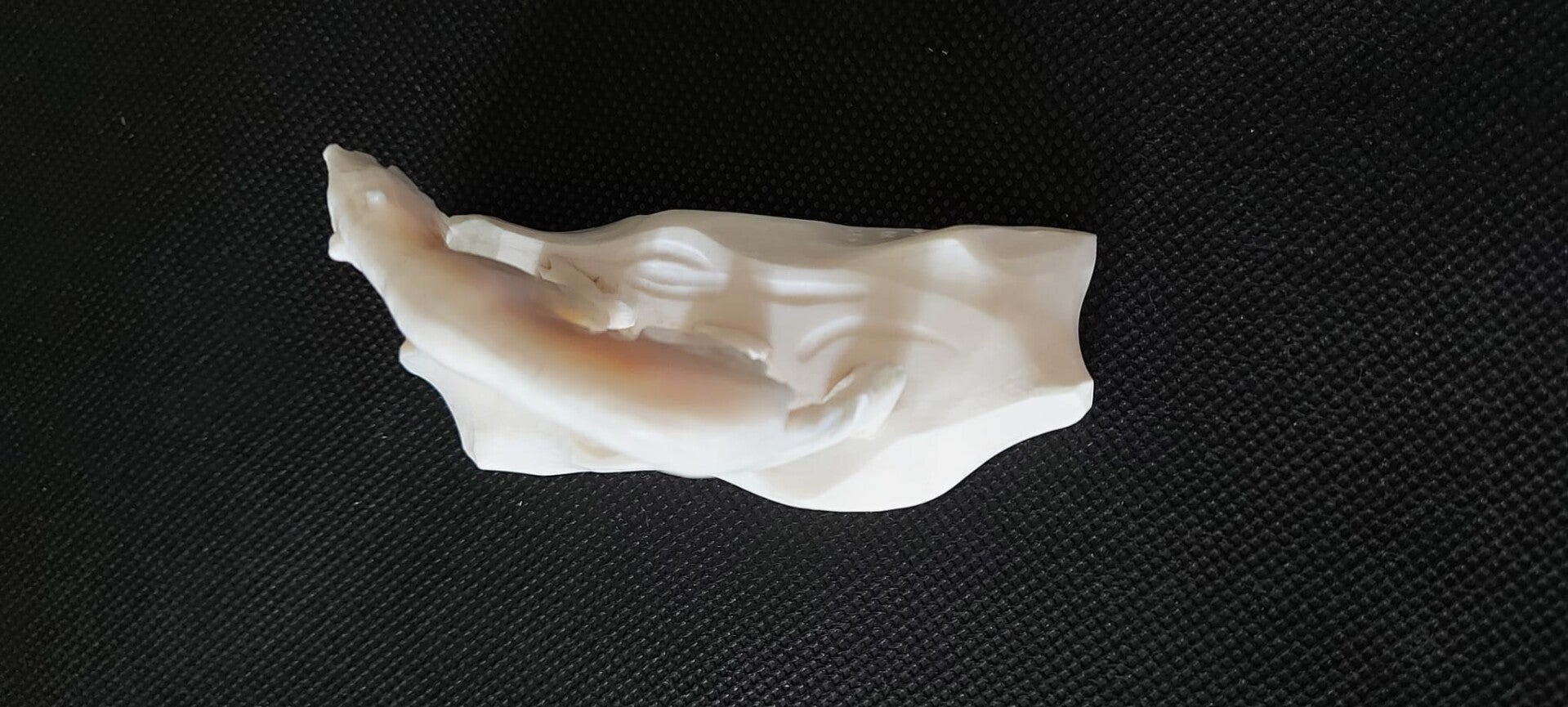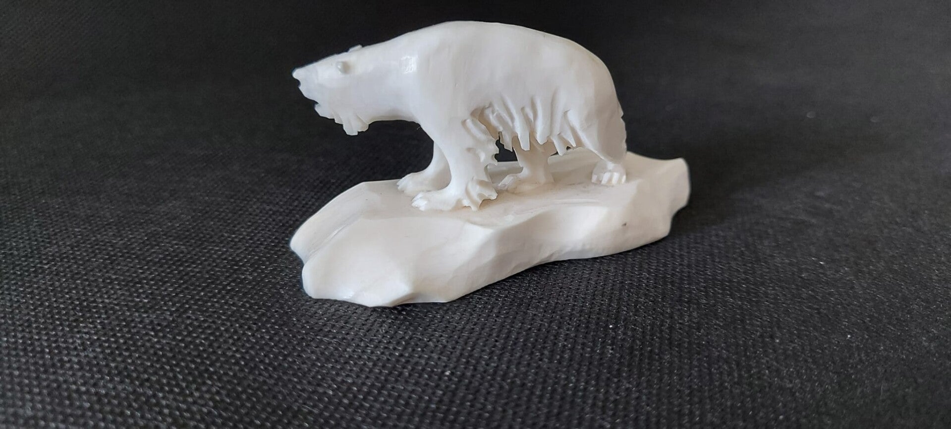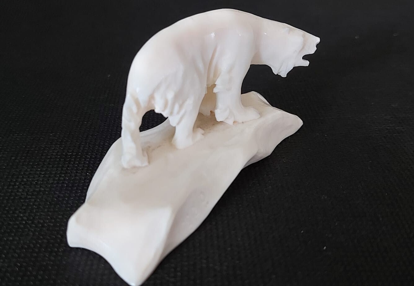 Utskåret isbjørn av hvaltann 84 gr L 9.5cm H 5 cm