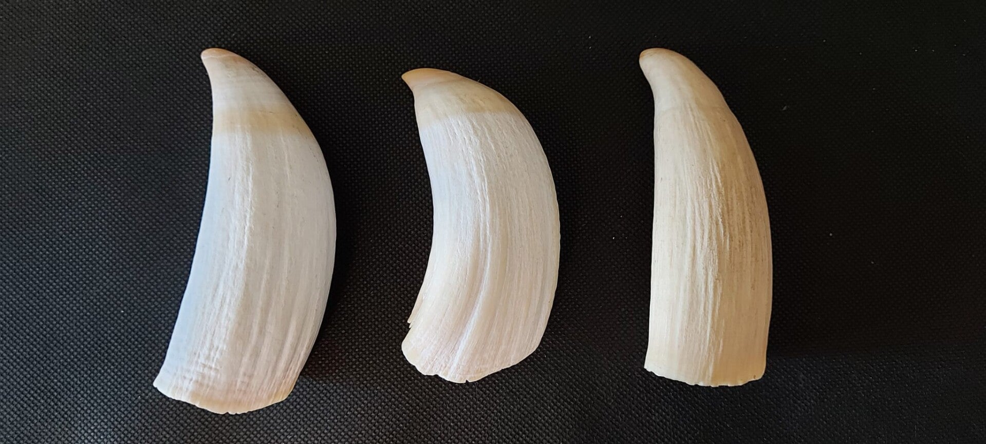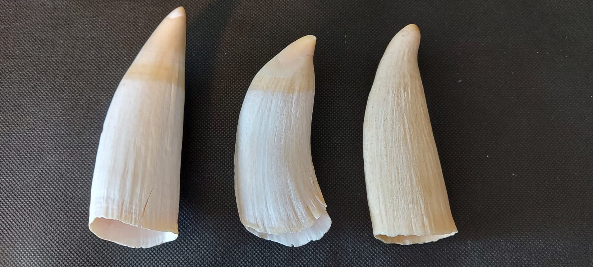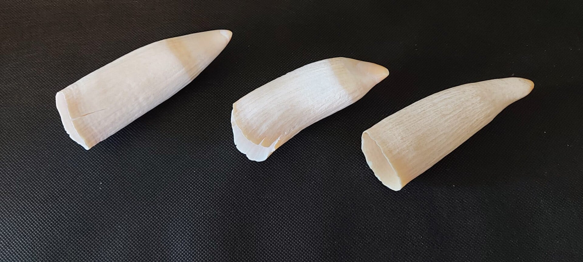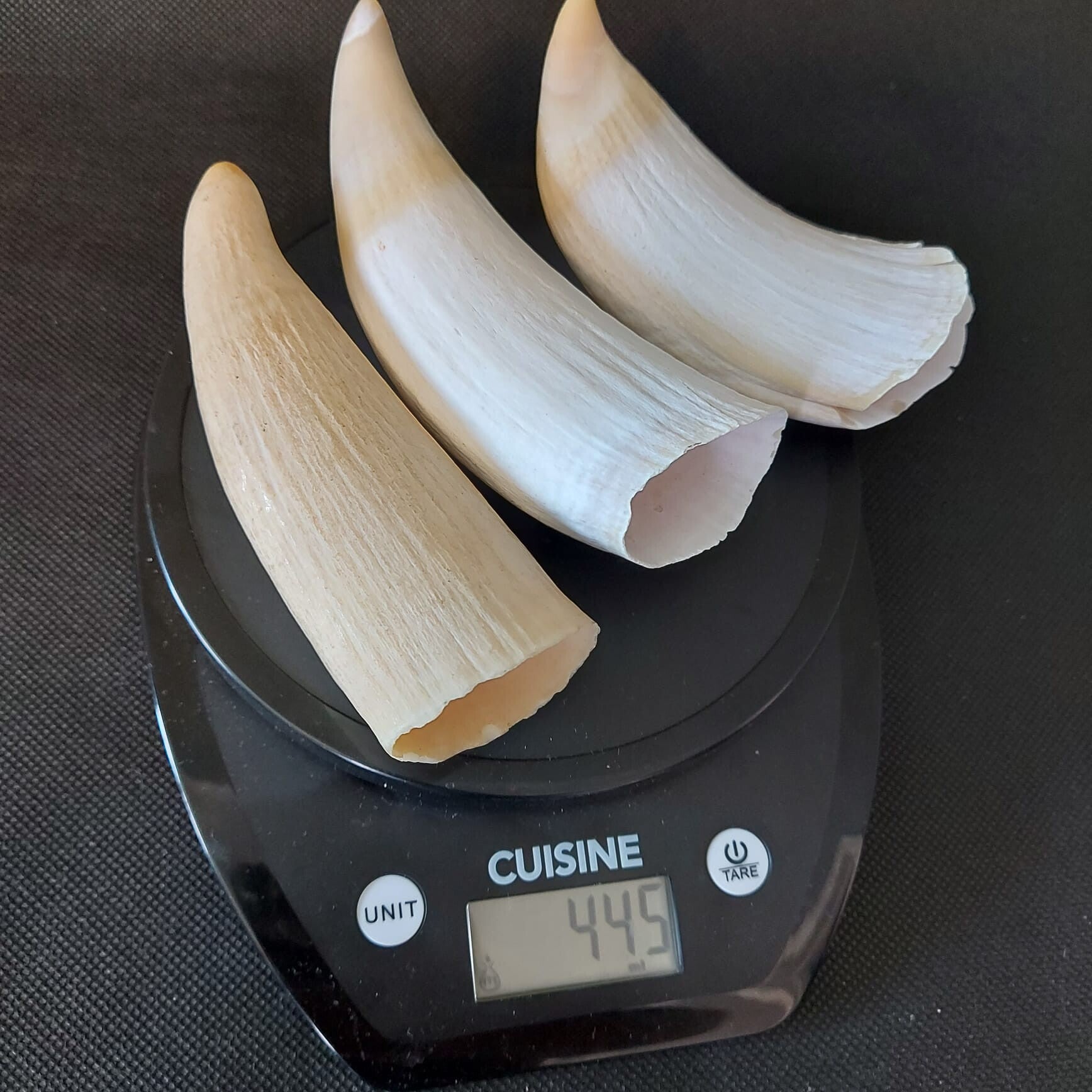 Hvaltenner 3 stk, 10.5 cm-11.5 cm, vekt tilsammnen 445 gr